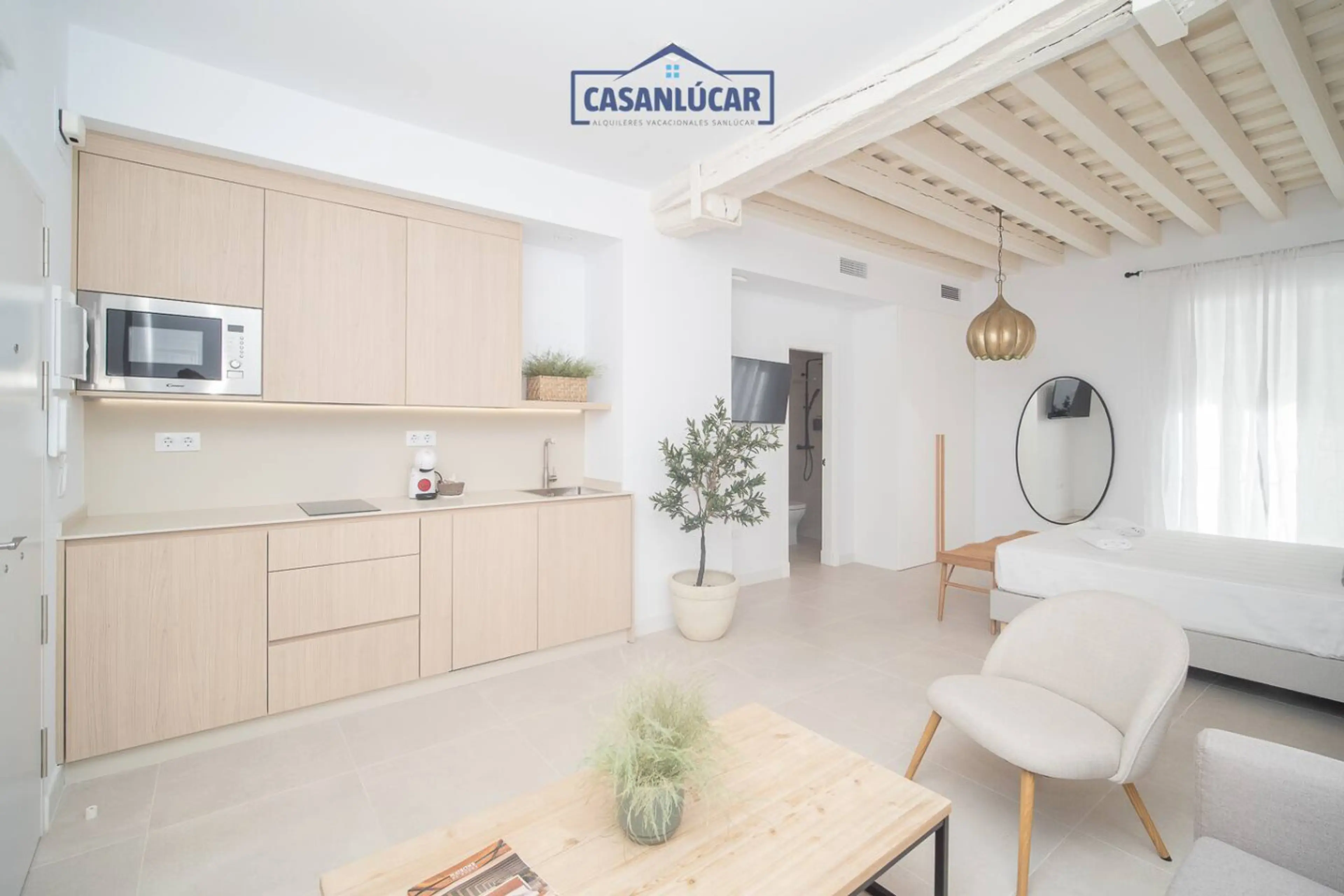 Excelente piso en la Plaza San Roque en el centro de Sanlúcar. Dispone de cama de matrimonio y sofá cama, baño y salón-comedor con cocina totalmente equipada. Apartamento con techos altos de madera. Excelente decoración y diseño. Aire acondicionado centralizado, ascensor y parking bajo petición. Cap...
