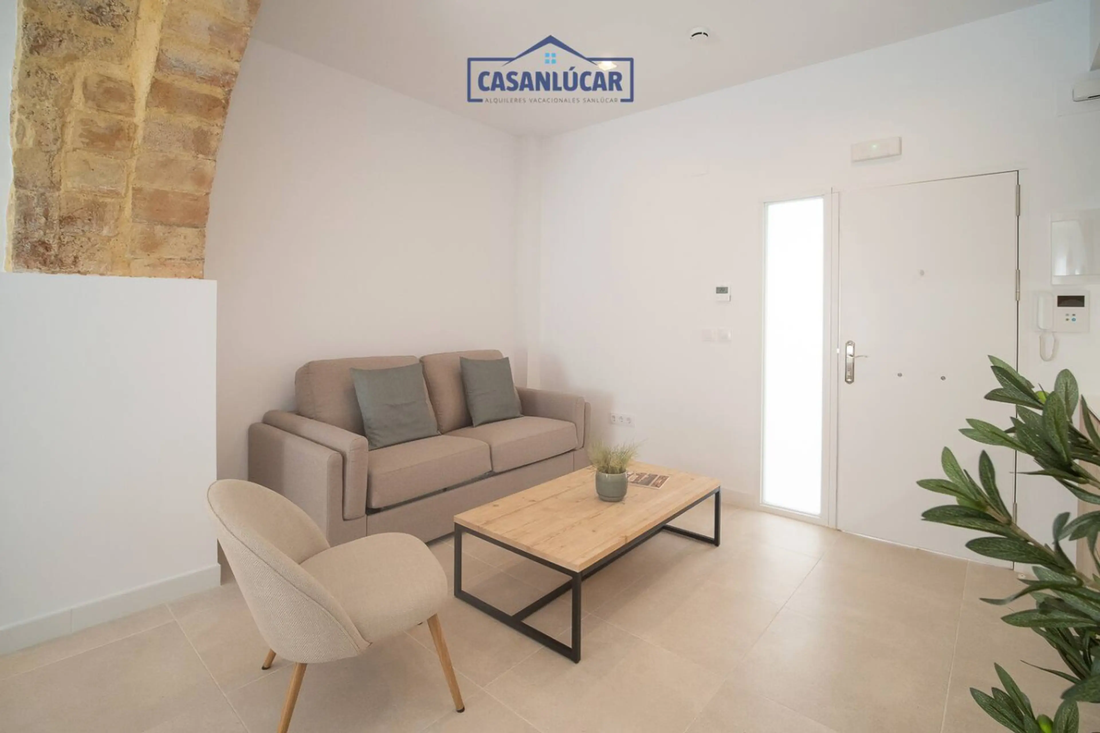 Excelente piso en la Plaza San Roque en el centro de Sanlúcar. Dispone de cama de matrimonio y sofá cama, baño y salón-comedor con cocina totalmente equipada. Apartamento con techos altos de madera. Excelente decoración y diseño. Aire acondicionado centralizado, ascensor y parking bajo petición. Cap...