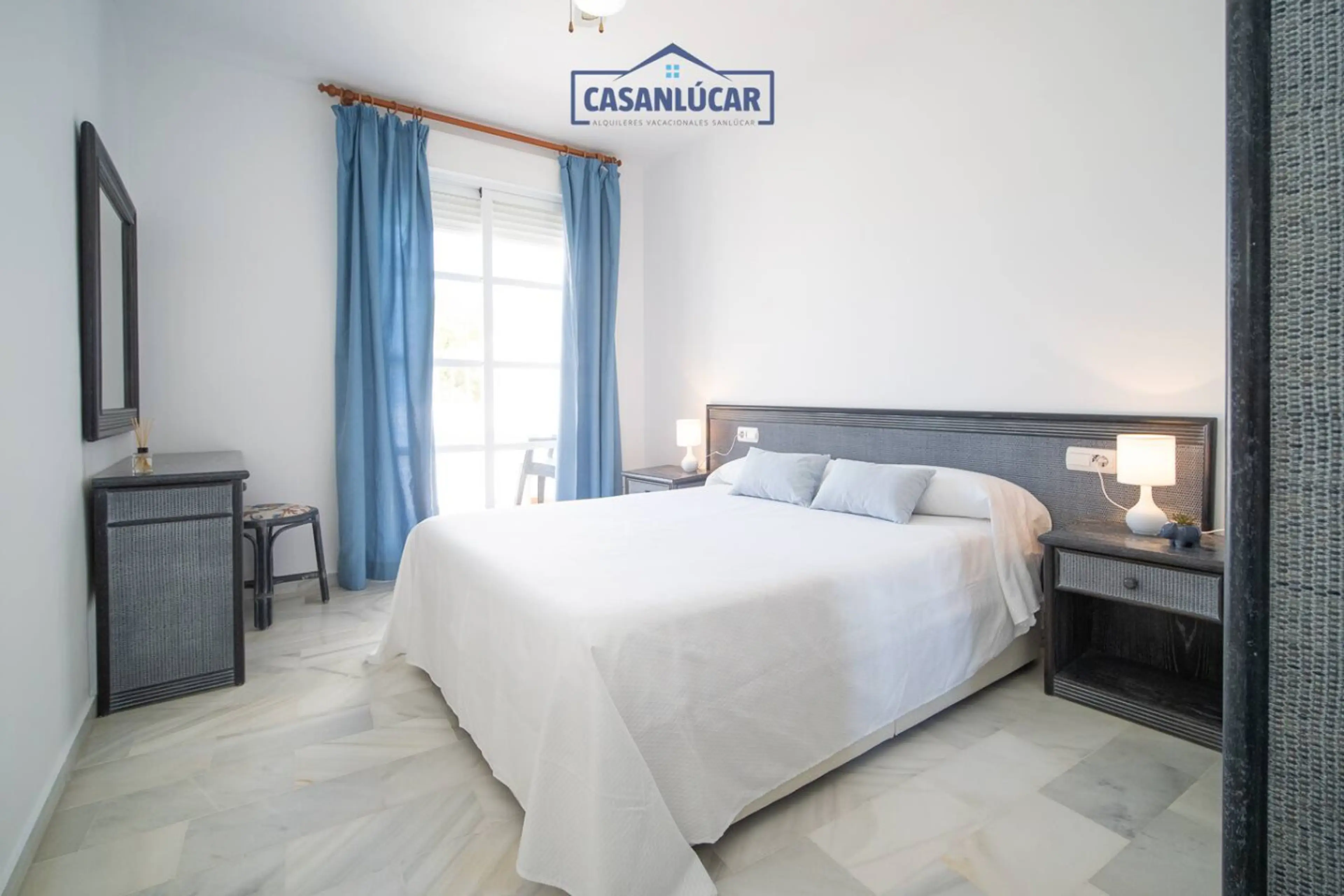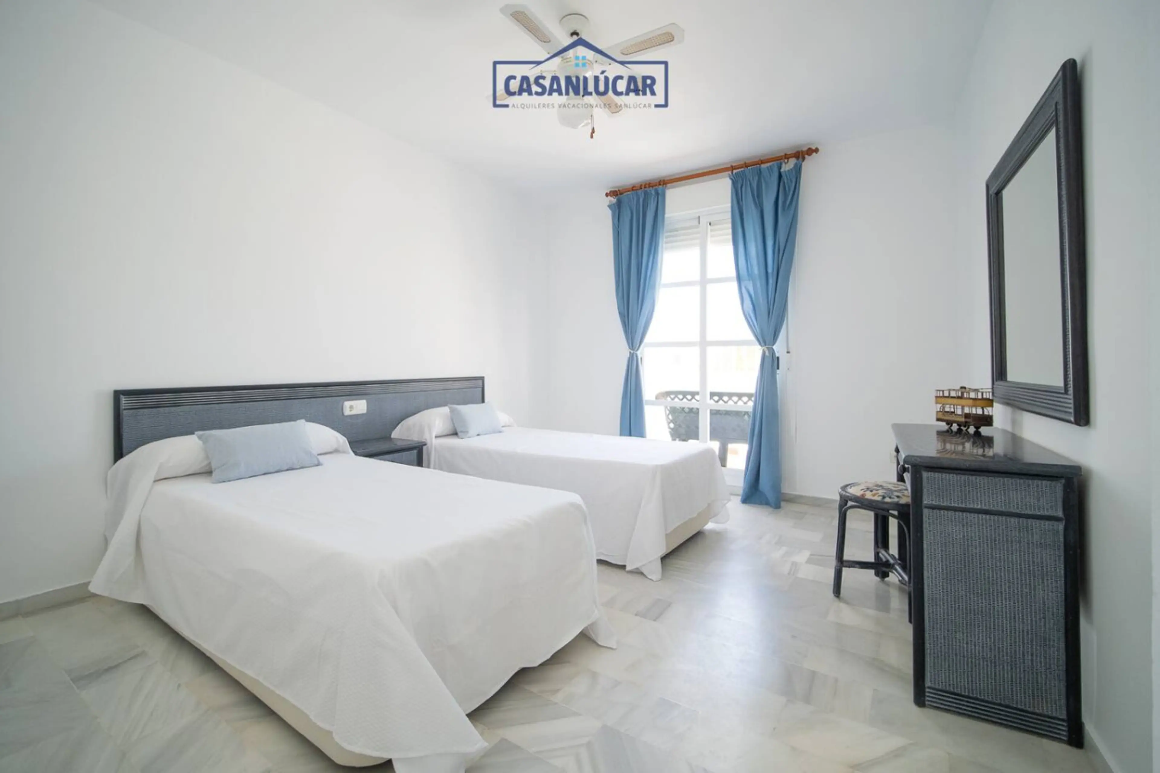 Apartamento a 200 metros de la playa. Este apartamento consta de dos dormitorios, uno con cama de matrimonio y otro con dos individuales. Con dos baños completos y una cocina completa, vitrocerámica, lavadora, microondas, abierta a un amplio salón-comedor. El apartamento dispone de todo lo necesario...