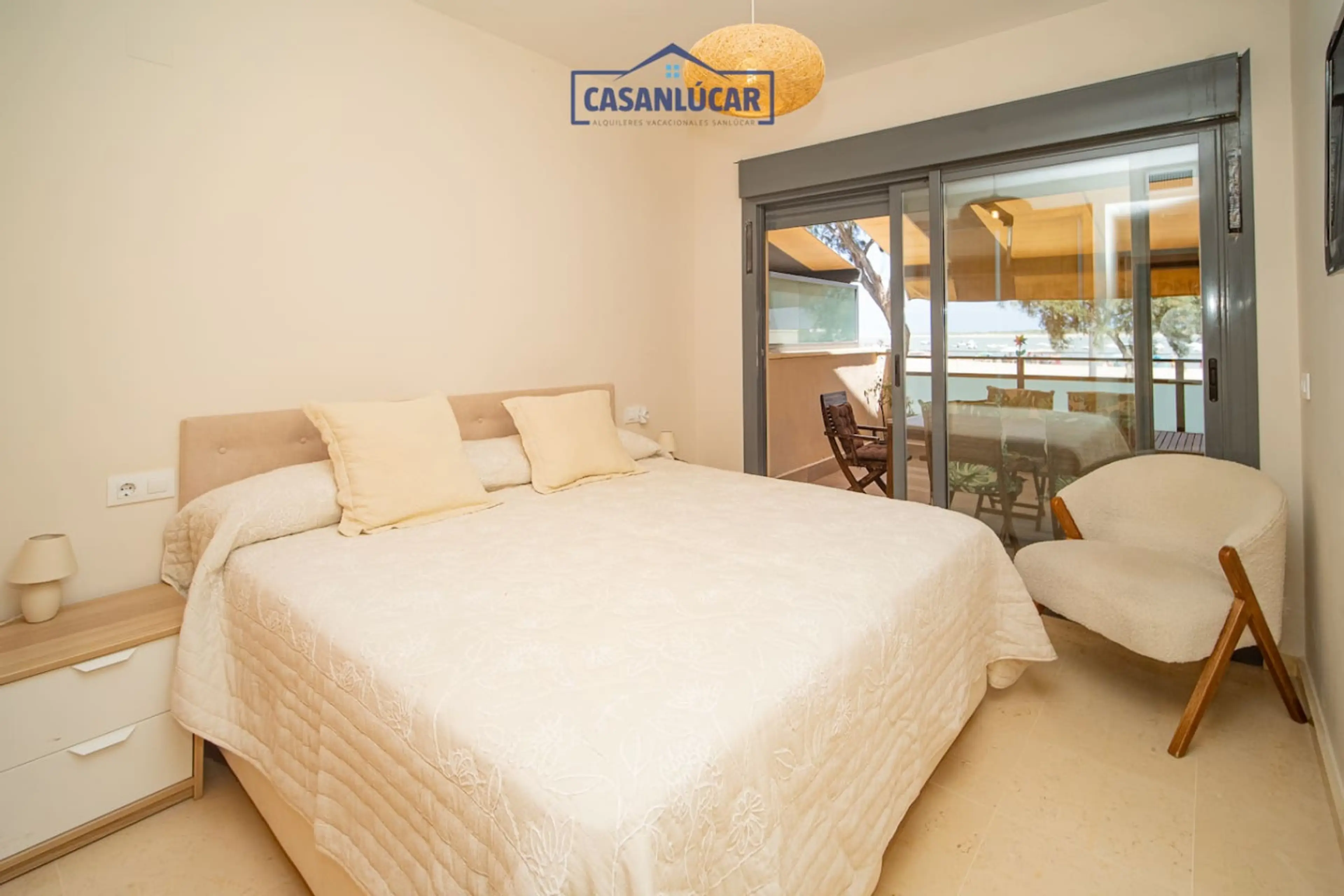 Apartamento en primera línea de playa. Amplio salón, 2 dormitorios, 2 cuartos de baños, aire acondicionado central, amplia terraza con vistas al mar. Garaje para 2 coches, wifi. A 10 minutos andando del centro. Para información o ayuda: contacta con Casanlucar. Piso a pie de la playa con vistas al...