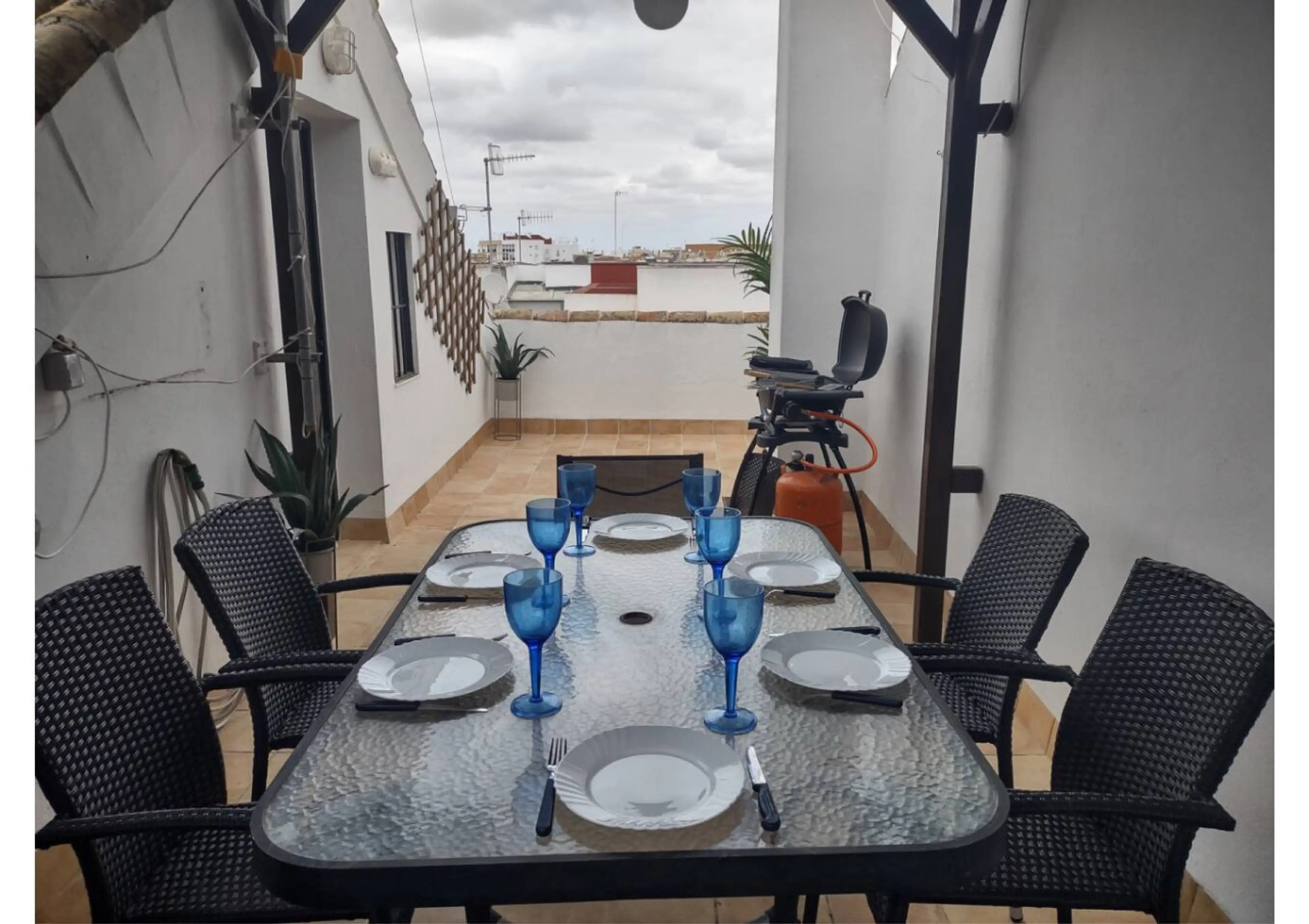 Duplex para 5 personas con terraza y piscina en la comunidad. La casa tiene una cocina moderna y emplea, un salón grande y un cuarto de baño en la planta baja. El la primera planta hay 3 habitaciones, una con cama de matrimonio, otra con dos camas individuales y otra con una cama individual. Más otr...